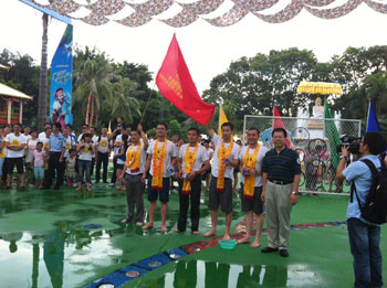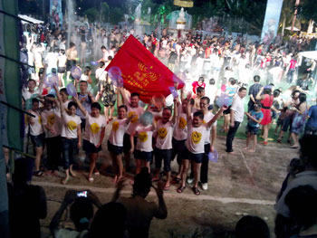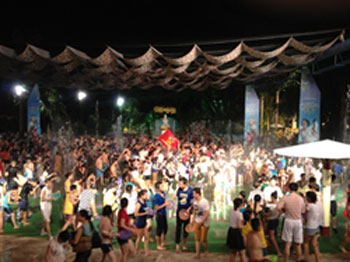 我们公司帅气男队热情地参加了LED协会组织泼水节比赛并且得到冠军。我们的美丽女员工不遑多让也同大家一起参加了一年一度的泼水狂欢盛典。每张年轻的脸上写意着激情、欢乐、时尚、动感。在这个热情似火的夏日,爱shui就泼shui! 在一片水花四射中,欧普特的红旗多么地张扬,欧普特年轻人人是那么地活泼可爱。余兴节目是观看民族村的高水平文艺晚会。一段悠扬的葫芦丝带出那茂密竹林深处的歌声,水一样的傣家姑娘身着花色筒裙,顶着水果的姑娘、挑着水罐的女孩、撑着花伞的小仆哨和举着罗伞的和尚、还有那在清清溪水旁起舞的孔雀 。。。